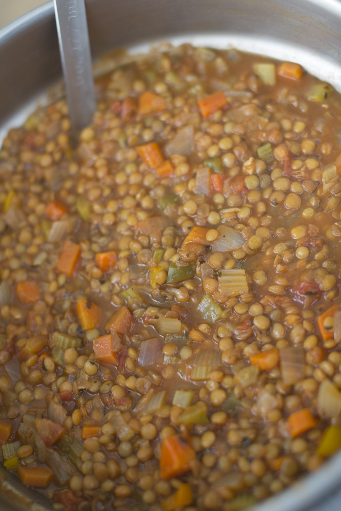 Cook on medium-low for 40 to 50 minutes. Stir every 15 minutes. You may add water if you feel the beans are too thick. If you used ham shanks, remove the bones and shred the ham off and add back into the lentils.